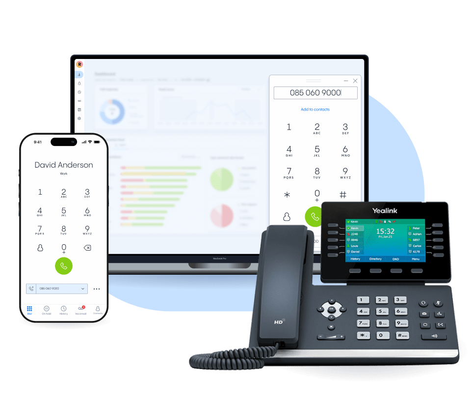 Rinkel offers various desk phones and accessories from Yealink that work directly with your business number.