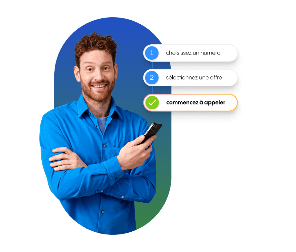 Pour vous lancer, quelques minutes suffisent. Choisissez votre numéro parmi une large sélection de numéros locaux et nationaux, puis sélectionnez l’offre qui vous convient. Pas de coûts cachés, pas de petites lignes, pas de contrat interminable.