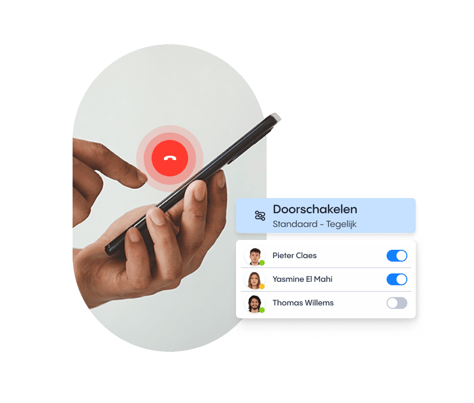 Je zit in een vergadering, je bent aan het eten, of je hebt gewoon echt geen goesting om op te nemen. Maak van dit telefoontje gewoon het probleem van iemand anders van je team. Met doorschakeling beslis jij wie er opneemt en in welke volgorde, zo simpel is het.